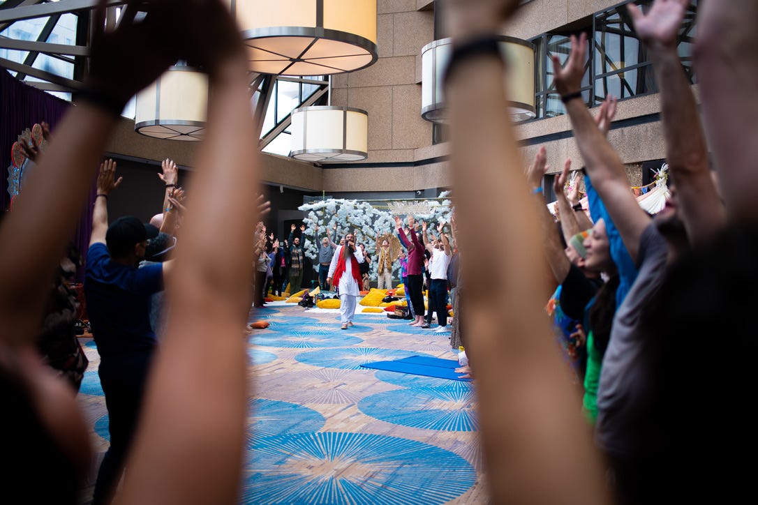 The evening ecstatic dance became a wave of shared invocation. The dance floor reverberated with a Jai Mahadeva call-and-response that threaded its way through the entire set—voices rising, dissolving, and returning again.