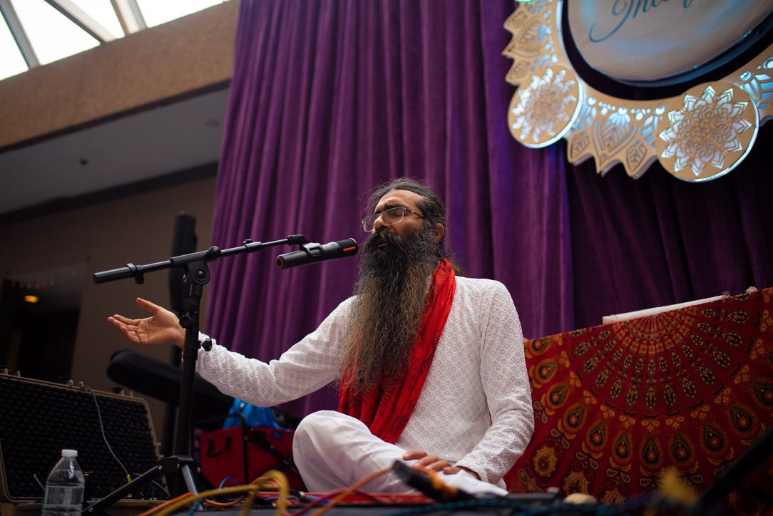 This space was further deepened by Evan Herring, whose flute and saxophone playing added a luminous, melodic dimension—at times tender, at times ecstatic. His contributions didn’t sit on top of the kirtan; they wove through it, amplifying both devotion and joy.